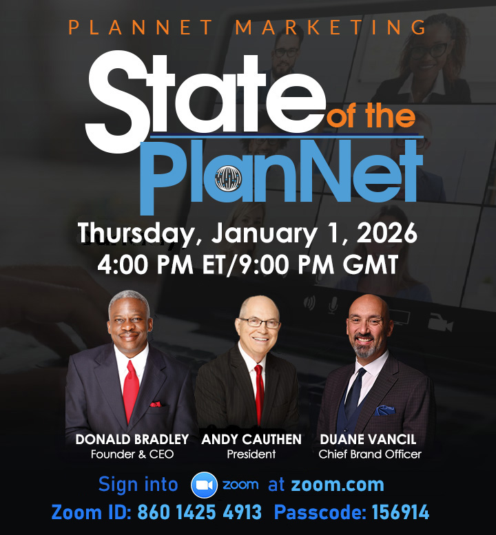 Friday, December 26, 2025 Shannon Kaufman 54 Event State of the PlanNet Call with Donald Bradley, Andy Cauthen & Duane Vancil Thursday, January 1, 2026 - 4:00 PM ET / 9:00 PM GMT Share Print Switch article Merry Christmas and Happy New Year from PlanNet Marketing! Previous Article I Will in 2026... Next Article